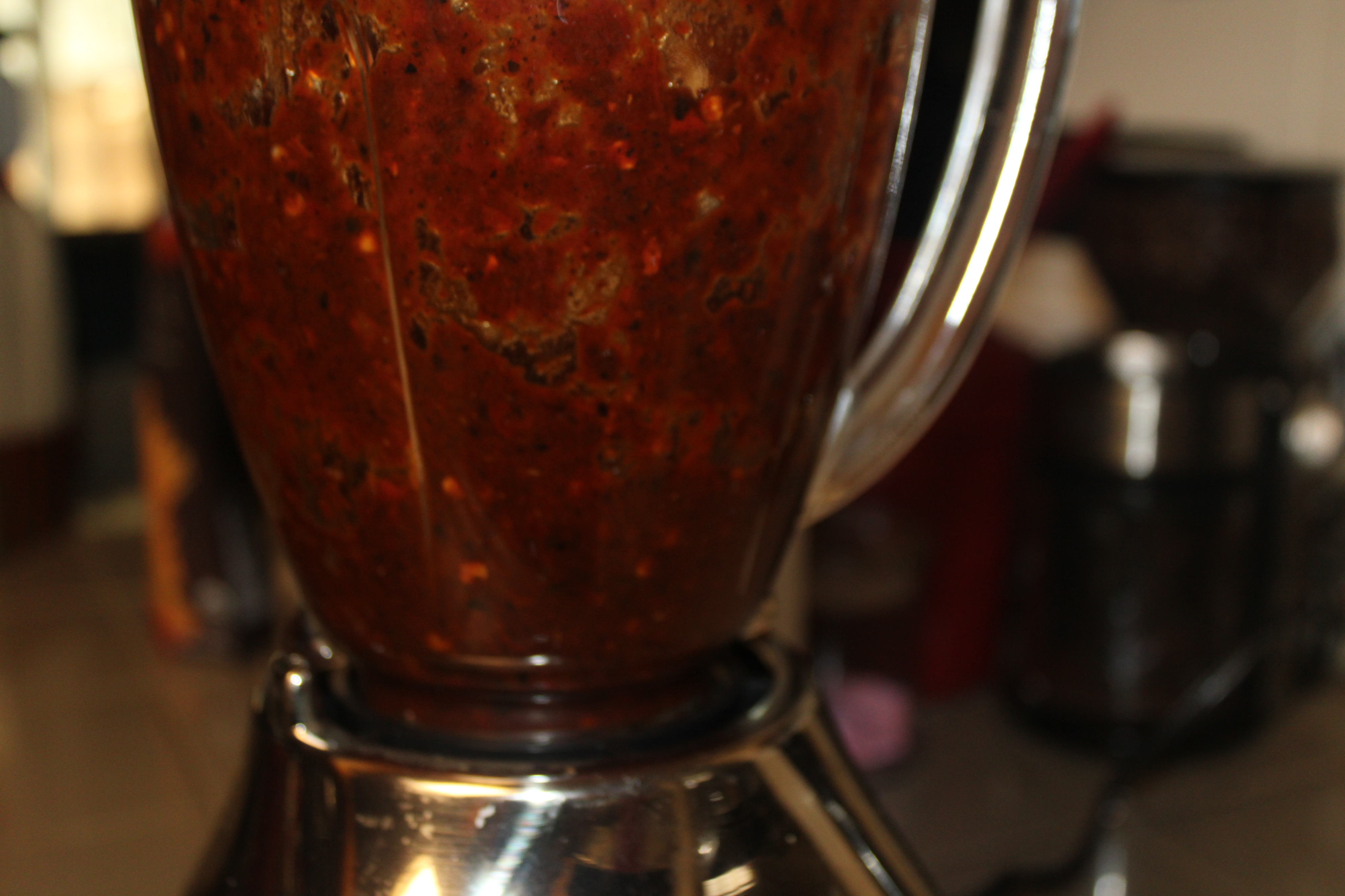 Remove stems from cooled Chile peppers and discard. Open peppers and remove seeds. Use a chef’s knife to roughly chop peppers. Transfer peppers and one cup of the cooking liquid to a blender. Cover and blend until a smooth paste forms.