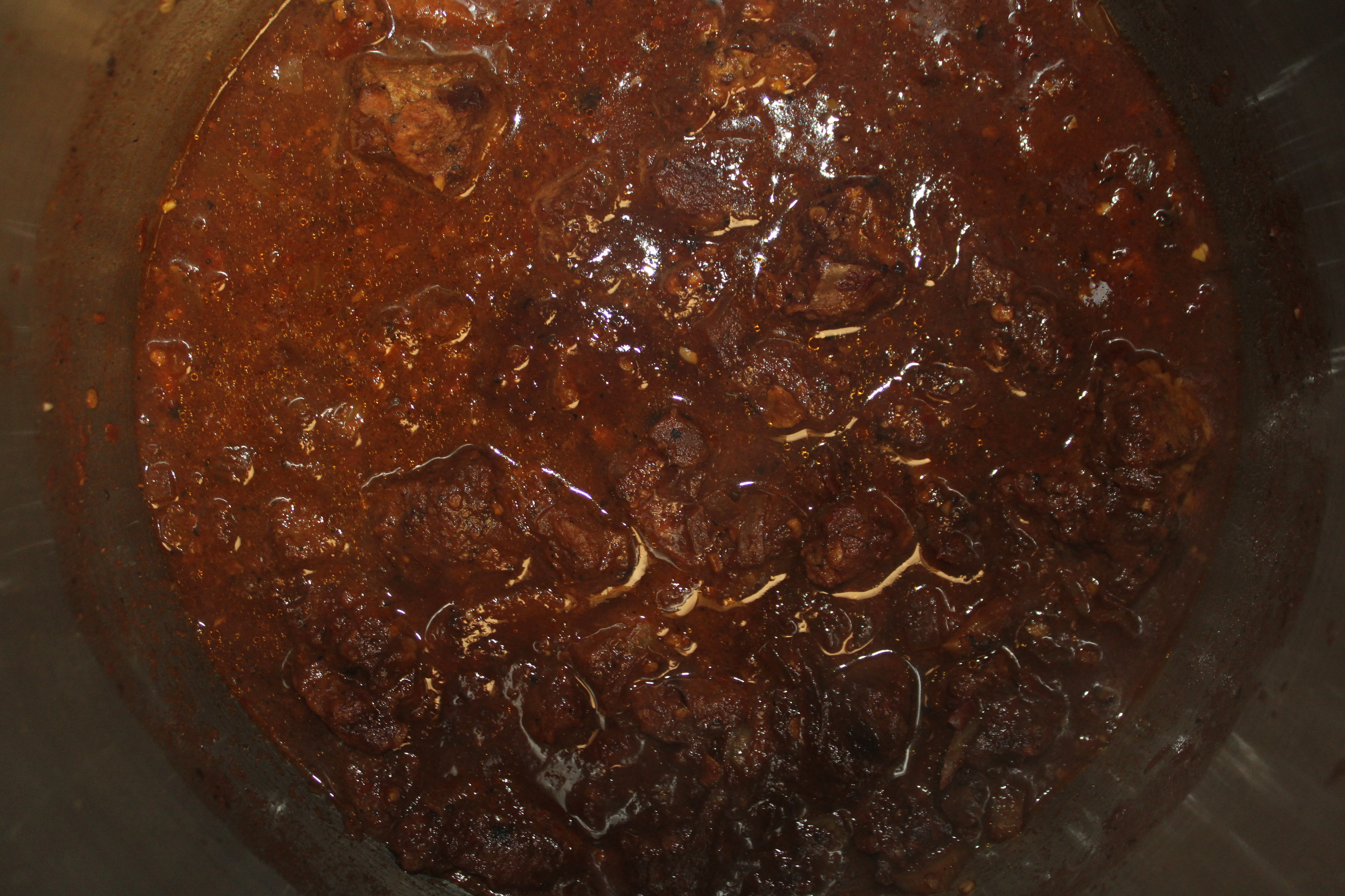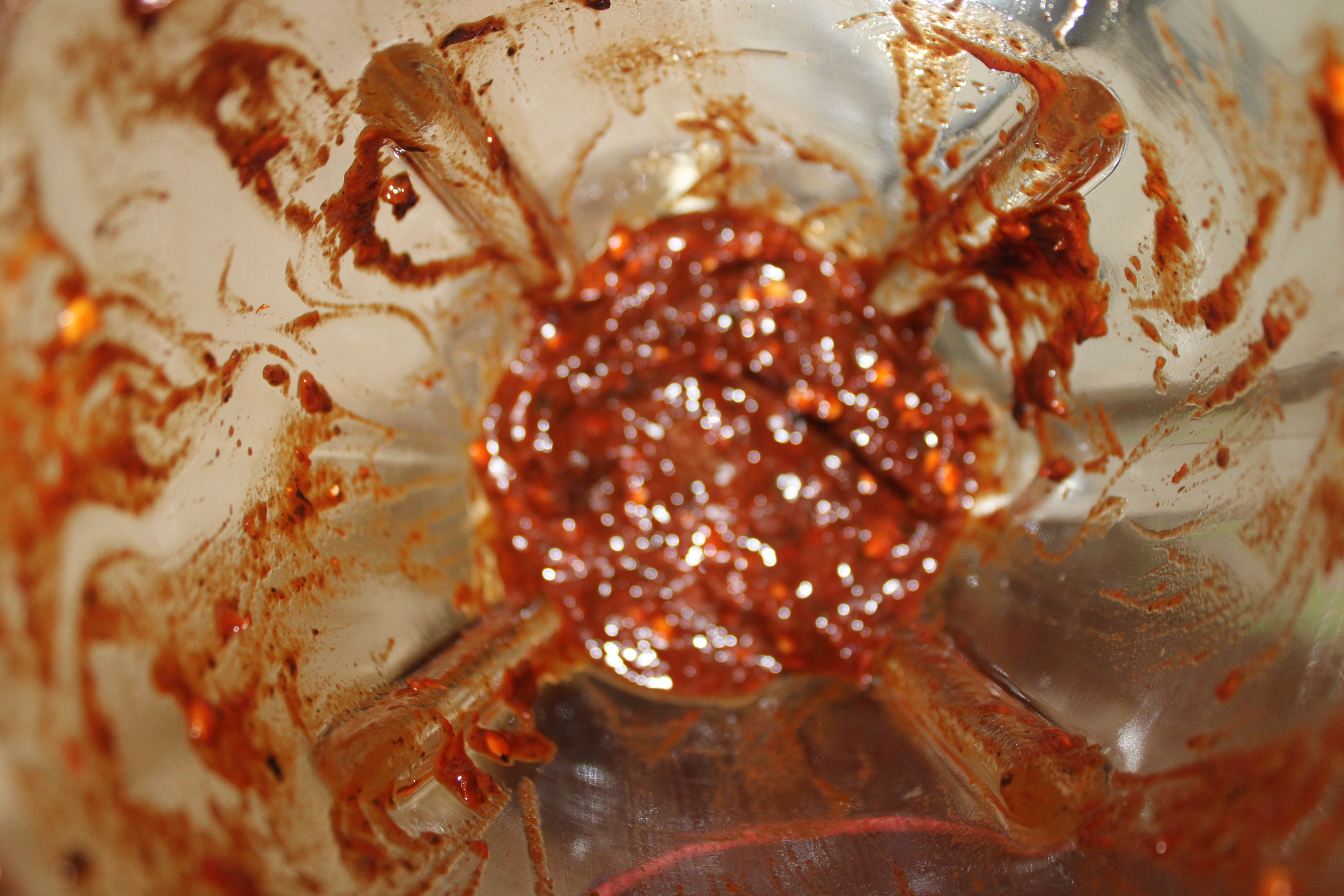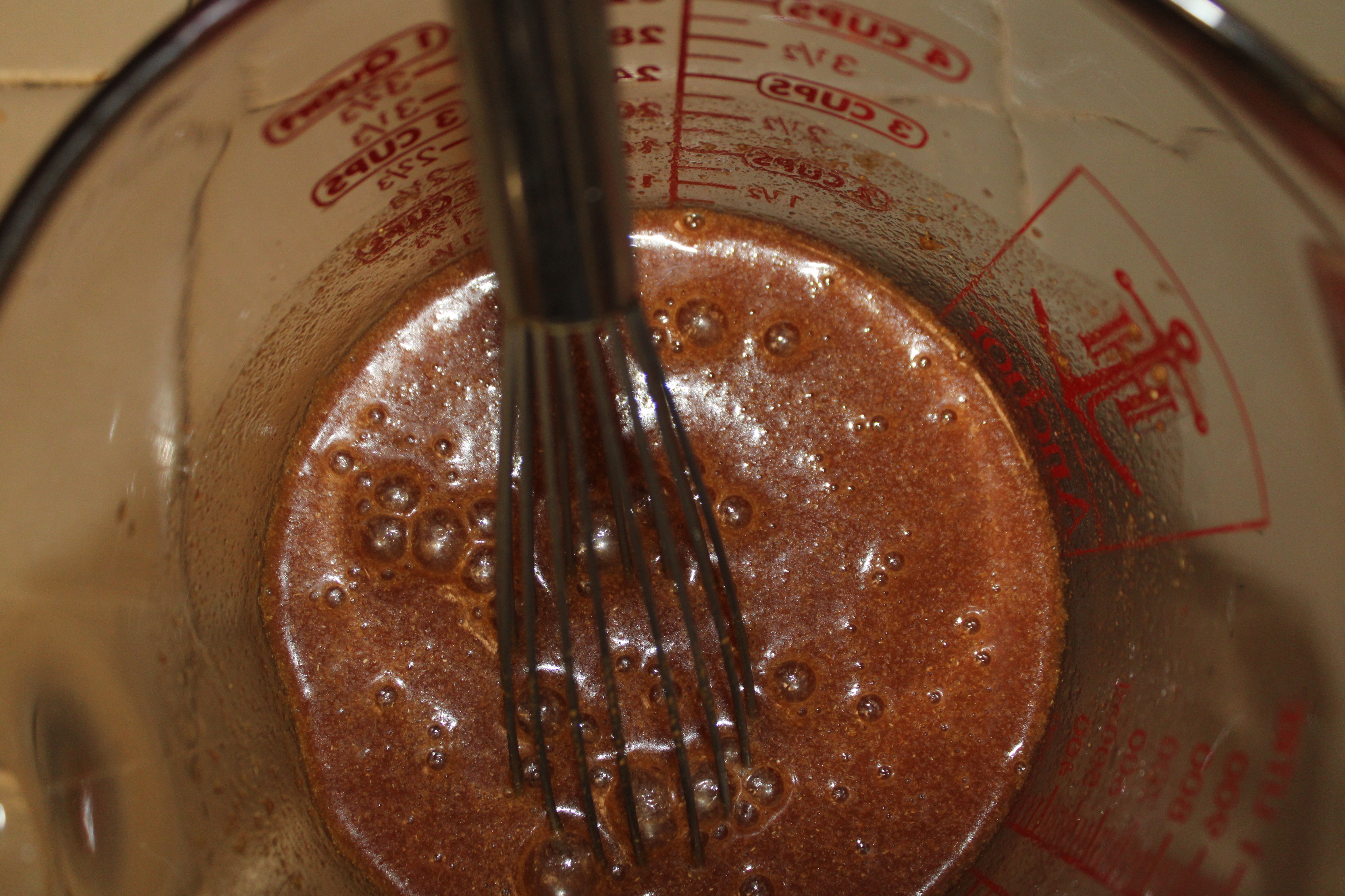 In a 4-cup glass measuring cup combine Cumin, Brown Sugar and Tomato Paste. In 1-cup measuring cup measure orange juice, add to the sugar mixture. The measure chicken stock, add to the large cup. Whisk to combine. Add onions, garlic and Chili Paste. Whisk well.