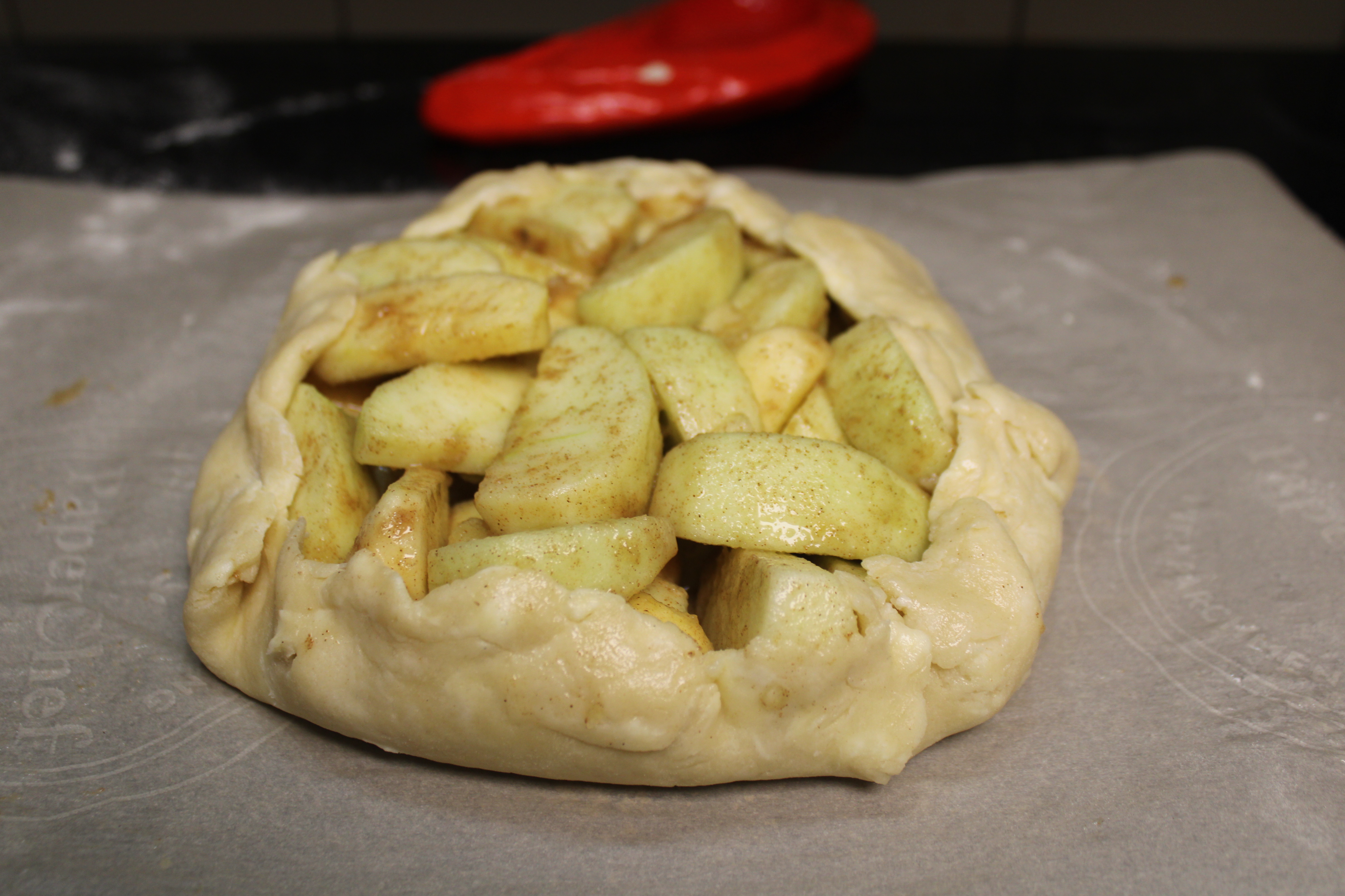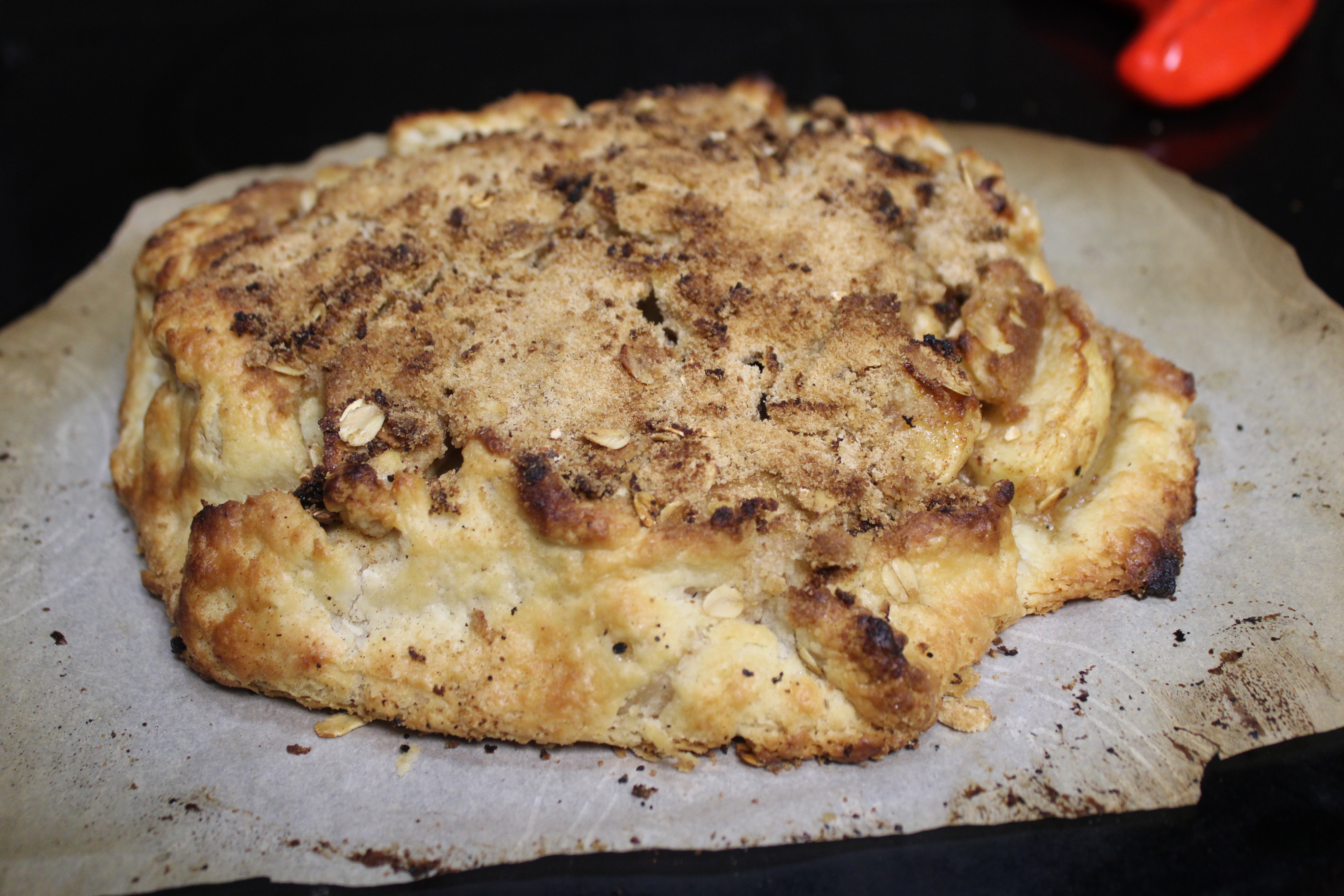 To Assemble: On a lightly floured surface, roll dough into a 10-inch circle. Transfer to a parchment paper-lined baking sheet. Spoon the apple filling over the pastry to within 2-inches of edges. Fold the edges of pastry around filling, leaving center uncovered. Sprinkle Dutch Crumb Topping over the exposed apple filling.