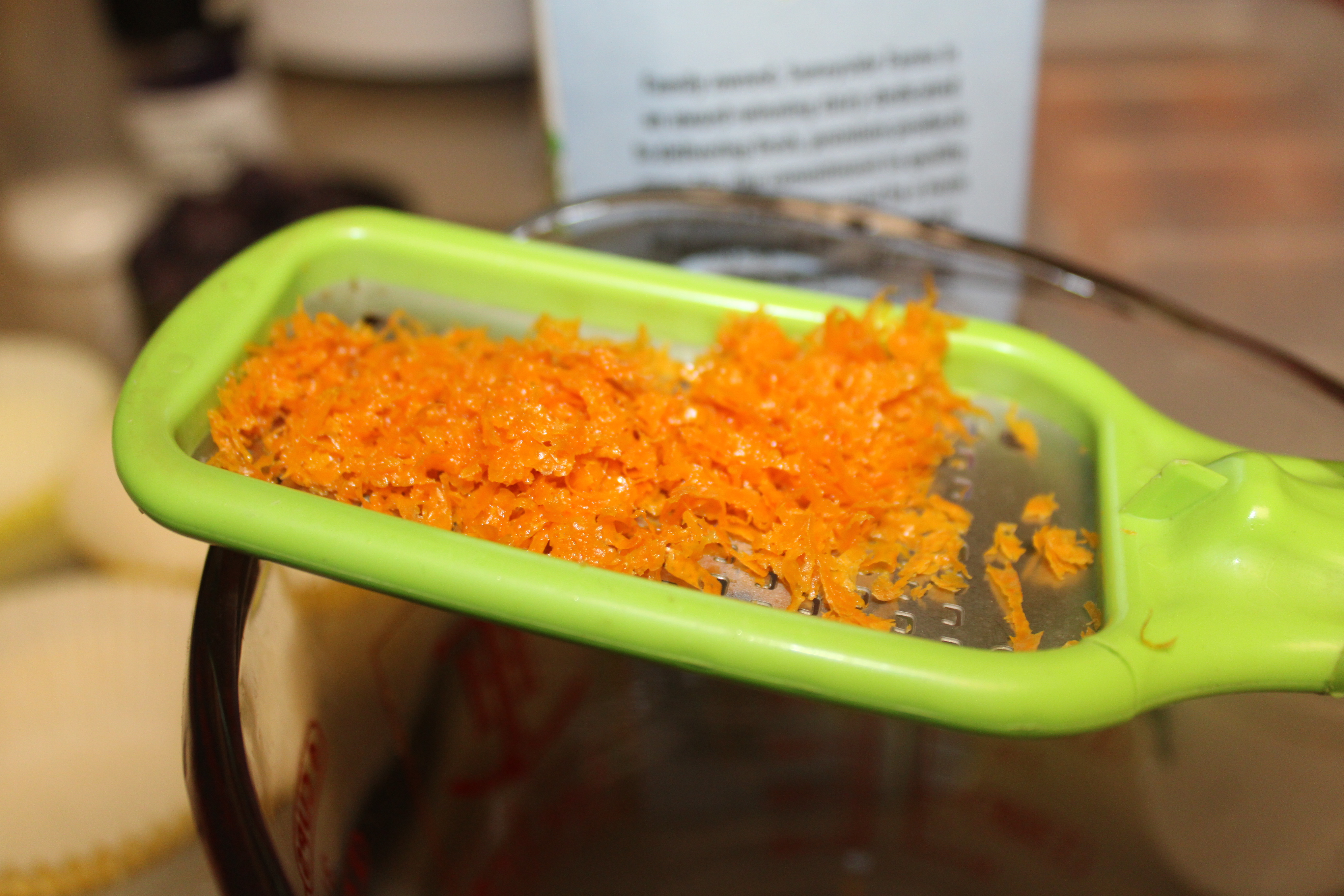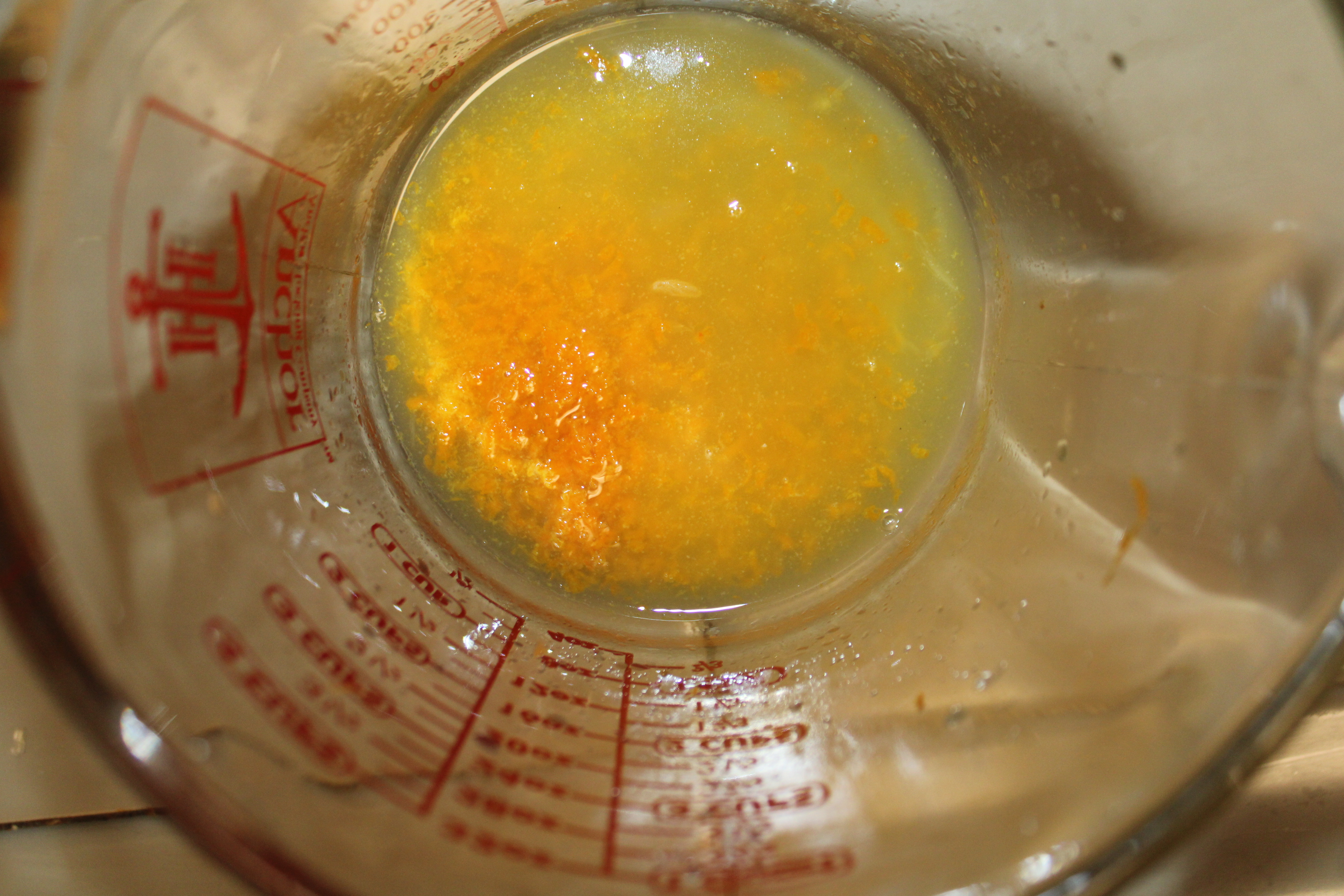 Zest the orange into a 4-cup measuring cup, then juice the orange into the same cup. Add enough buttermilk to the fresh orange zested juice to measure 1 cup of liquid. Set aside. Melt butter, set aside to cool.