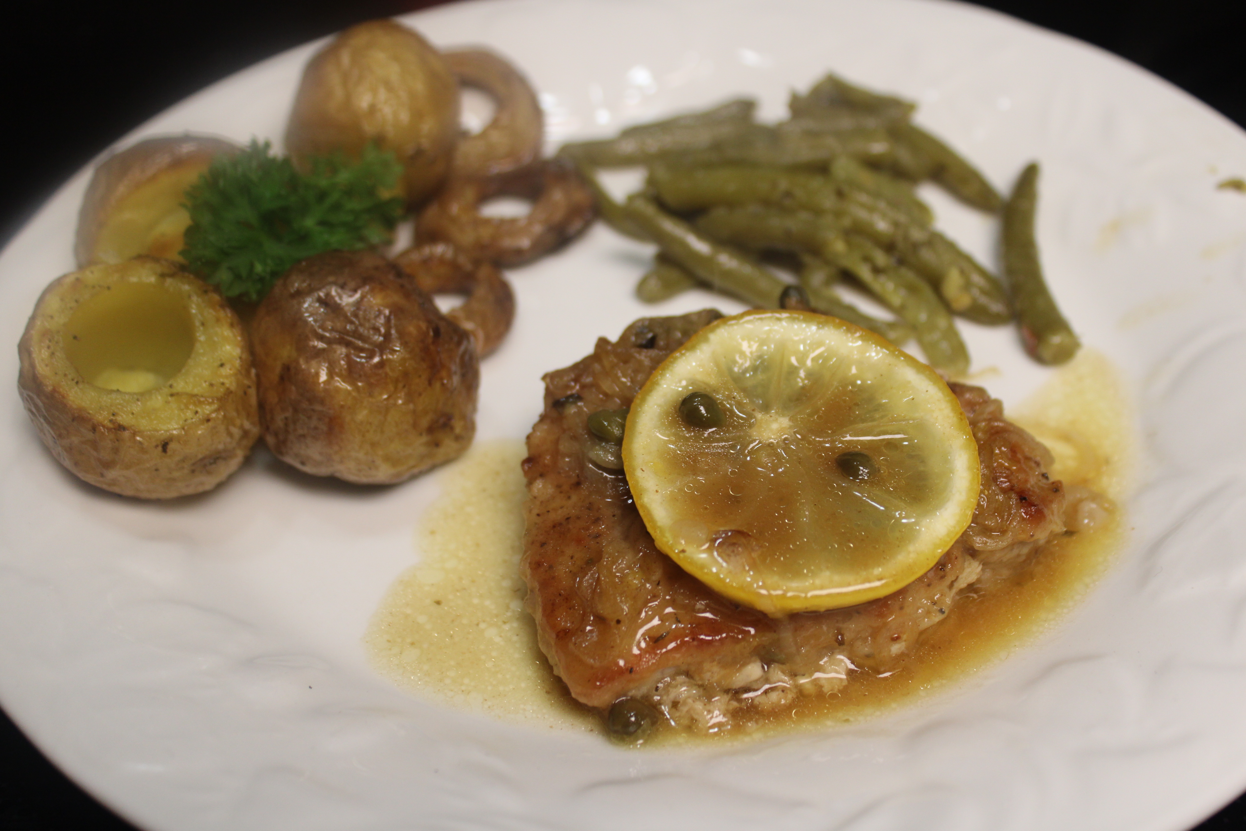 According to Pastor Chapman, the language we speak is the one we need recuperated. A person who is a gift giver but does not receive gifts in return is hurt or disappointed. A person who performs acts of service wants their partner to also do things for them without being asked. I disagree. Hubby’s “language” is Gifts. Mine is Acts of Service. He doesn’t necessarily want a gift for a gift. Just as I don’t want him to make the bed because I cooked a fabulous meal. Yet our needs are the same – we seek Words of Affirmation and Quality Time. Those are the things that matter in every relationship. Children need this from their parents. We need this from our partners. We even seek it from our friends. Everybody wants to hear Thank you. You are wonderful. That was so thoughtful of you. And most of all I love you. We need to be seen and acknowledged. How we have learned to trigger the positive responses might be different. For me Acts of Service was something I learned by watching my mother. As the Family Hostess, she would create wonderful events, generally centered around foods, and in return she received praises from everyone. She glowed in those praises. I suspect, knowing the dynamics of Hubby’s family, that he saw his grandmother dote over his grandfather when she received gifts. Hubby’s grandfather was not a warm and fuzzy man, but he was a man of means. He expressed his feelings through his ability to give, and in return received words of gratitude from those around him. Like Pastor Chapman, I’m not an expert. This is just based on a long life of watching couples as they dance together. What do I know? Not much, except I like Pork Chops Piccata with the cute Mushroom Top Potatoes. So enough talking, let’s head to the kitchen. Enjoy!