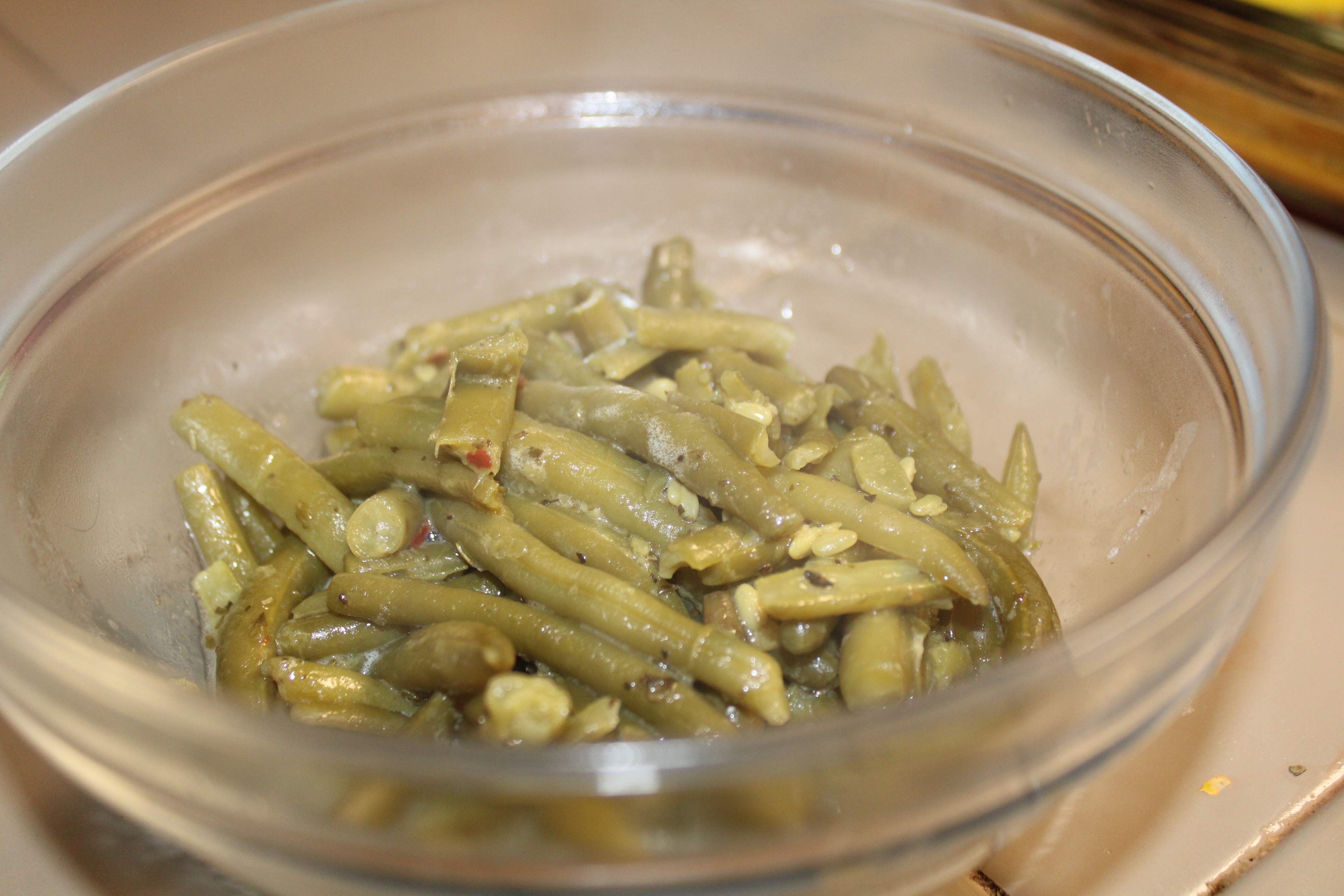 Drain all the canning liquid from the green beans. Rinse beans well, place in a small sauce pan.