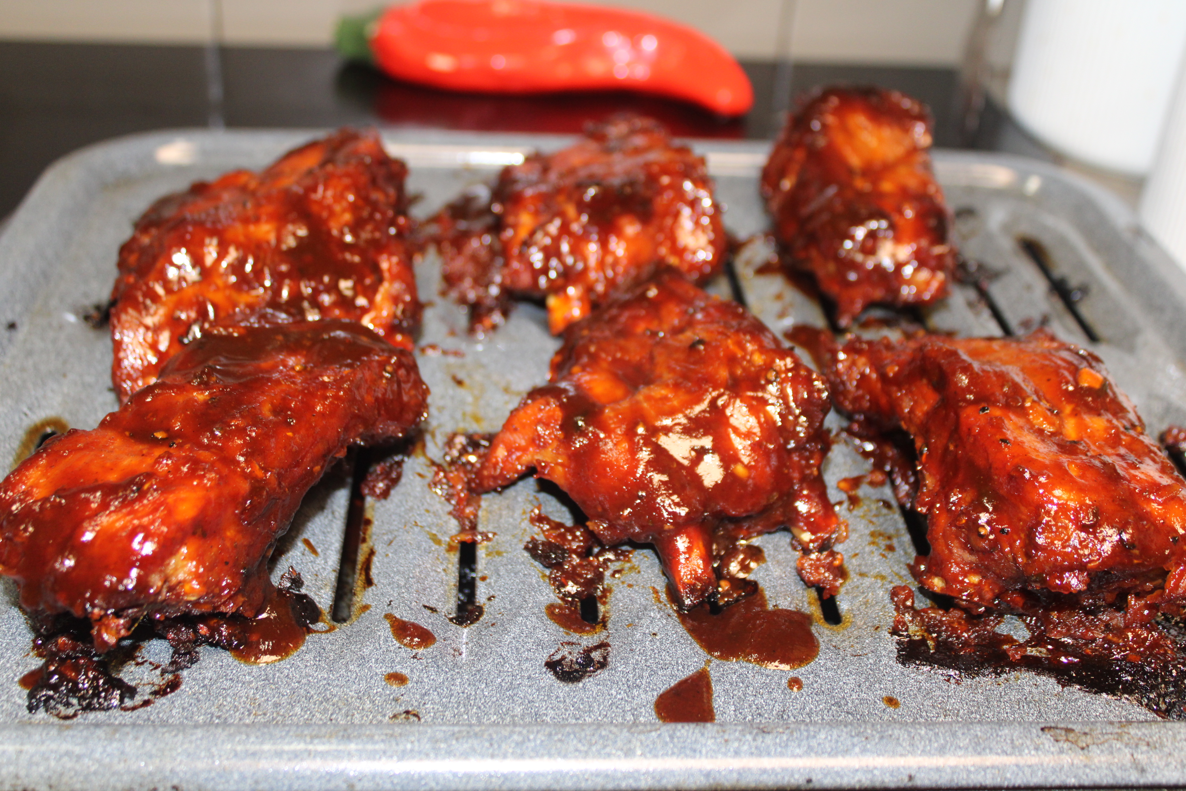 Heat oven to 325-degrees. Spray a broiler pan with cooking spray. Arrange ribs on the prepared pan. Place in the oven to bake for 20 minutes. Turn over, continue to bake another 10 minutes. Slather on some barbecue sauce, increase heat to 400-degrees and continue to cook another 10 minutes for the barbecue sauce to caramelize.