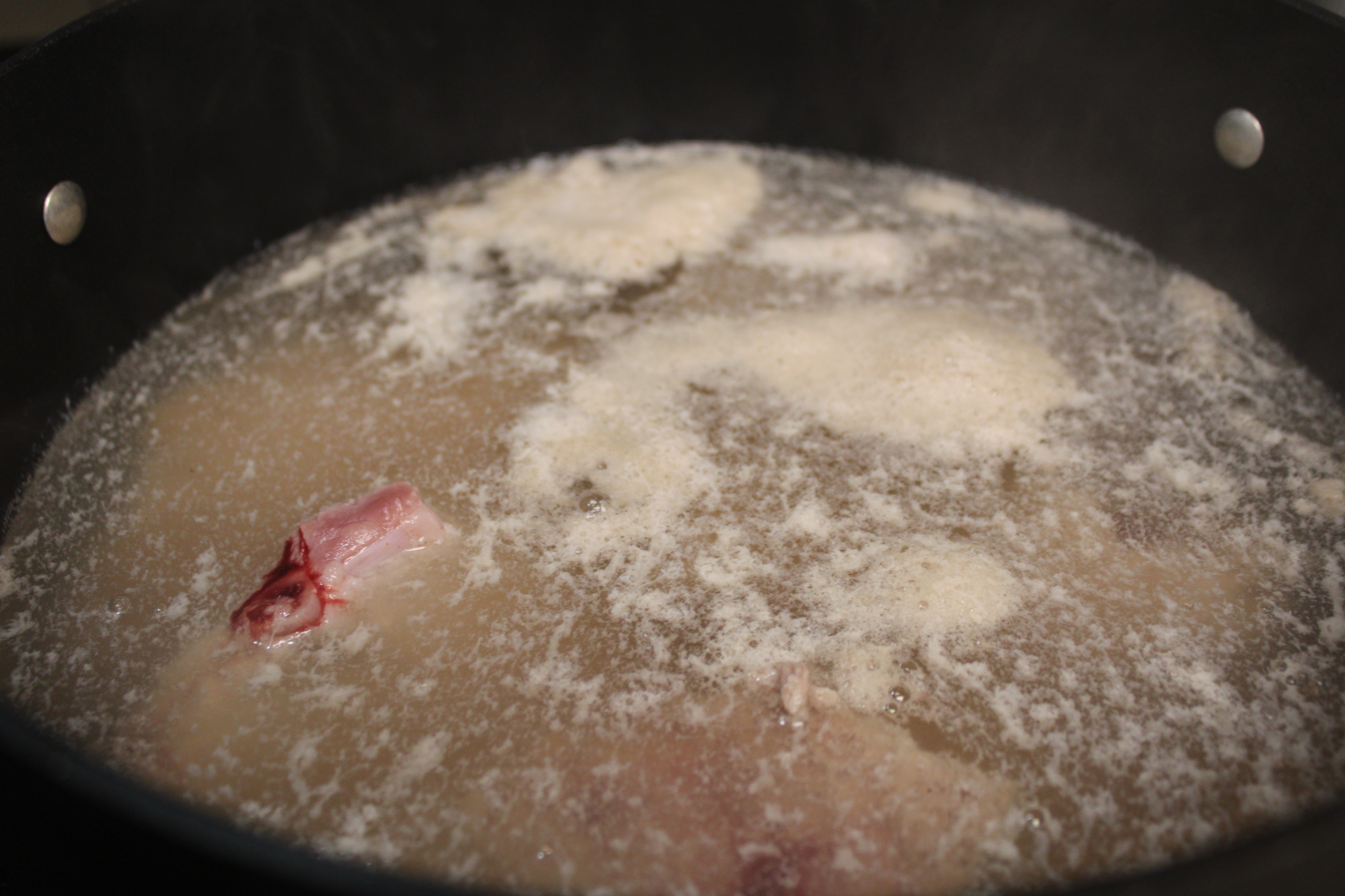 Remove silver membrane from the underside of the ribs. Cut ribs into serving sizes, about 2 or 3 ribs per cut. Place ribs in a large pan, fill with enough water to boil the ribs. Season water with a little liquid smoke. Bring ribs to a boil, cook for 20 minutes.
