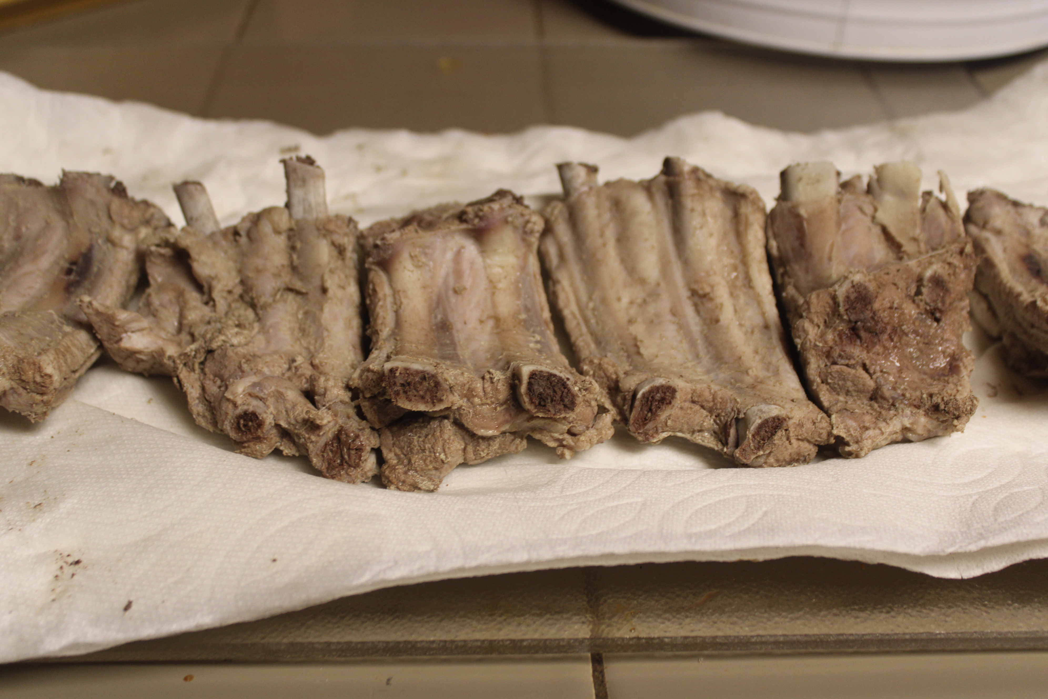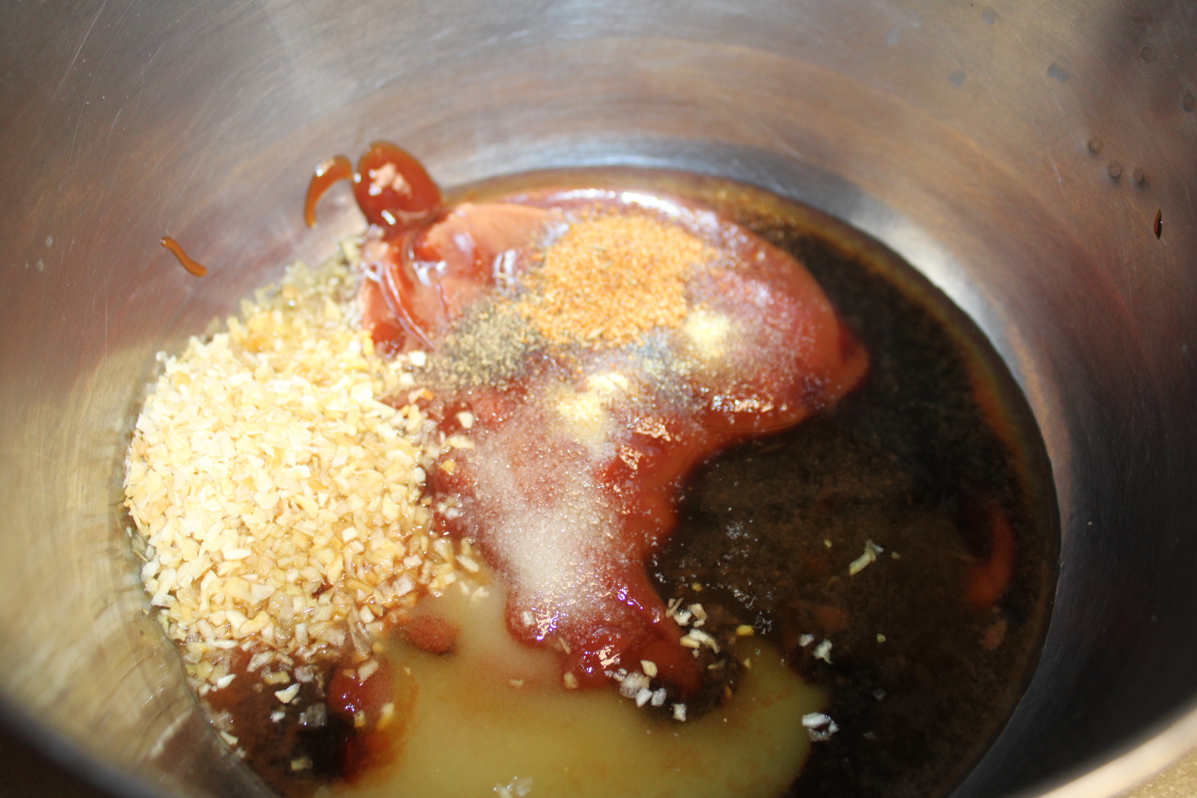 While the ribs are boiling, whisk together Ketchup, Molasses, Cider Vinegar, Salt, Pepper, Garlic Powder, Cajun Spice, Sugar and Onion Flakes. Set aside.