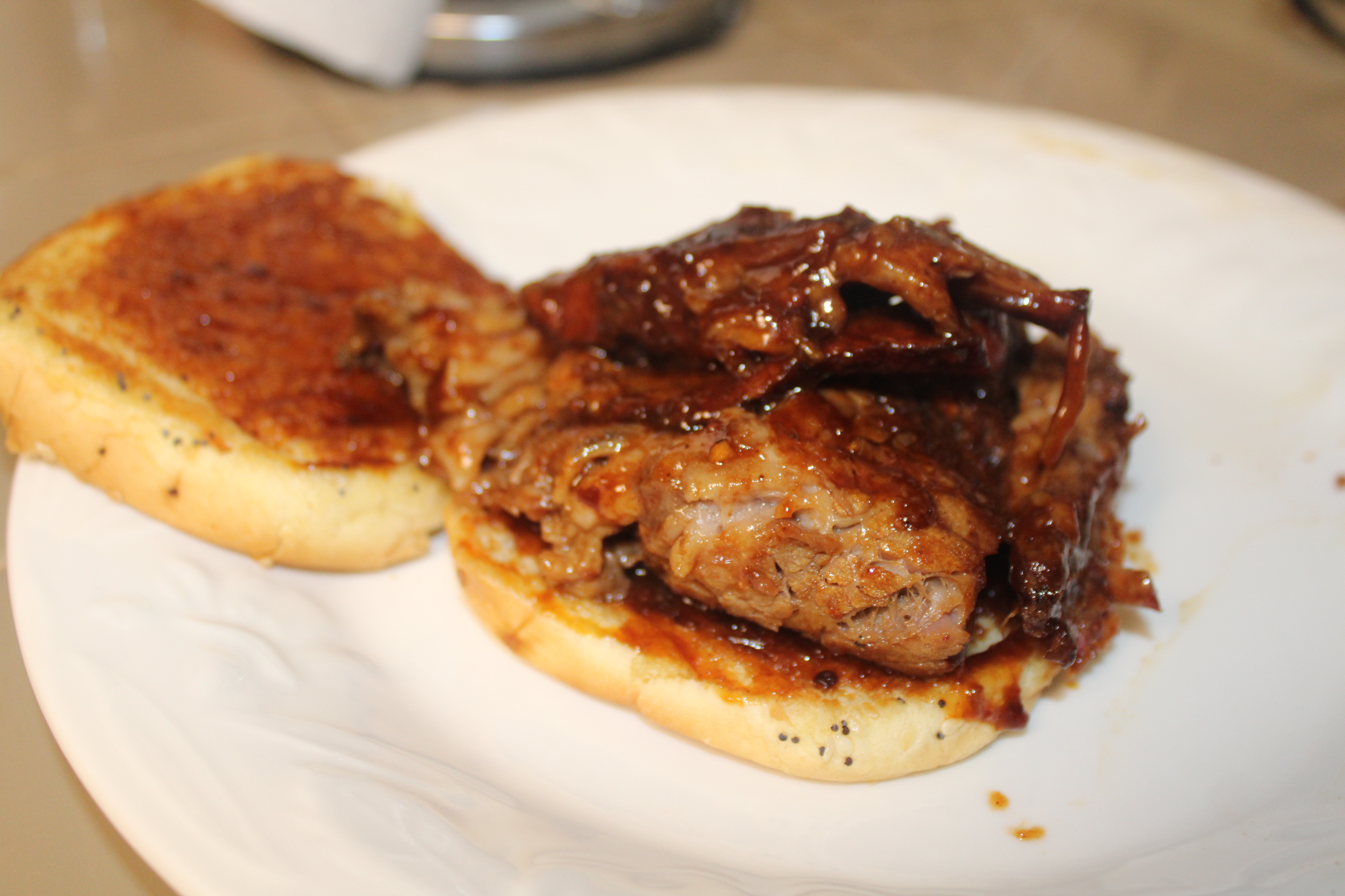 Every year the owner of Hubby’s company sends him a nice gift package for Christmas. One year it was a selection of Napa Wines. Most years its something from Omaha Steak Company. This year our gift came from New Braunfels Smokehouse out of Texas. You guessed it, there were two 3-pound smoked meats inside the box. One was a ham, the other a fully-cooked Texas Smoke House Brisket. Wow – a brisket at last! Since it was fully-cooked (as in smoked to perfection) I needed to figure out the best way to prepare it. First I did a little research as to how to re-heat a brisket while maintaining its texture and flavor. Then I came up with my own recipe for serving ours as Barbecued Brisket Sandwiches.