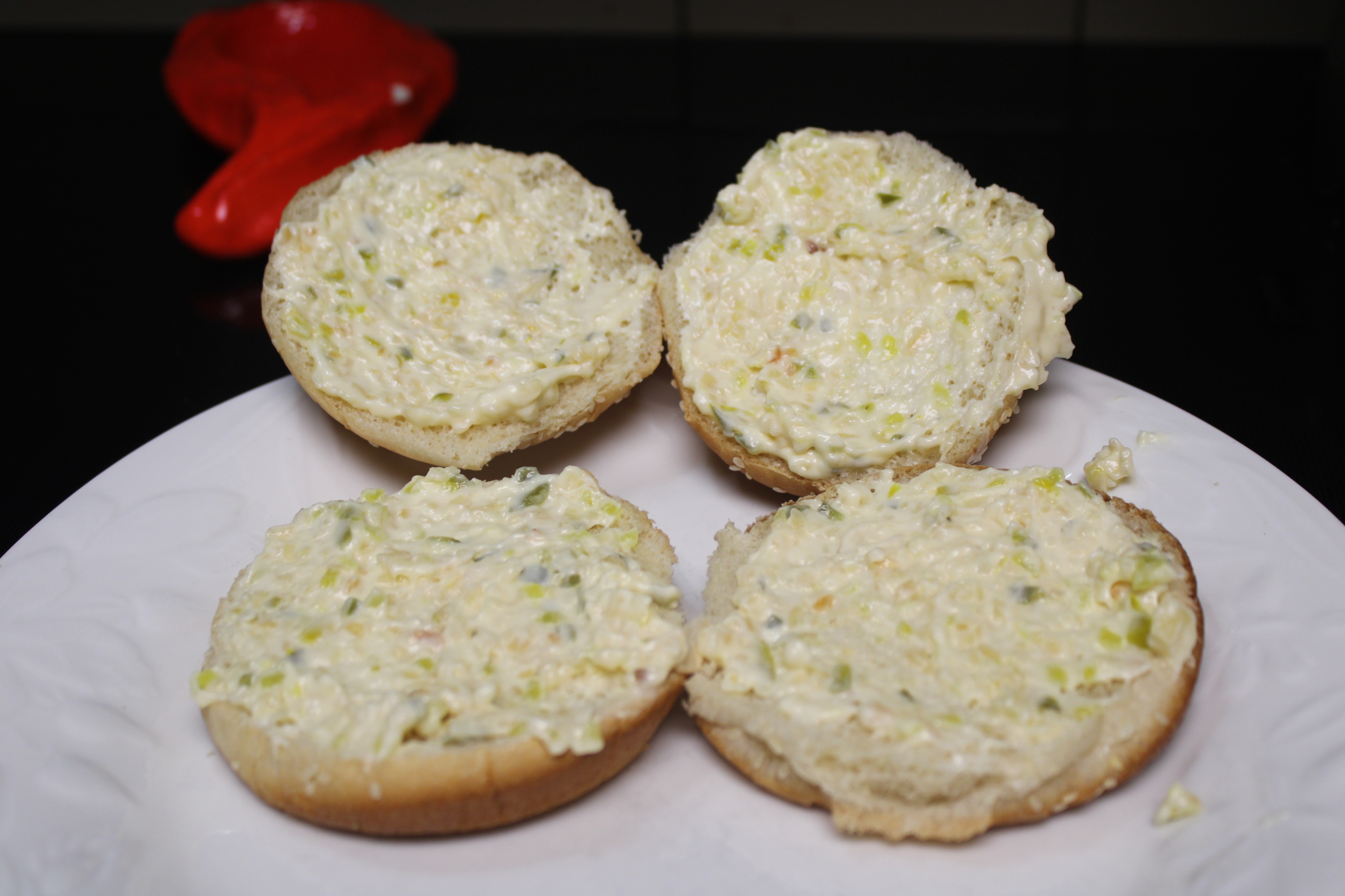 While the fish is baking, brush the inside of the hamburger bun bottoms with a little soft butter. Lightly grill, then grill the faces of the top buns. Stack together and keep warm.