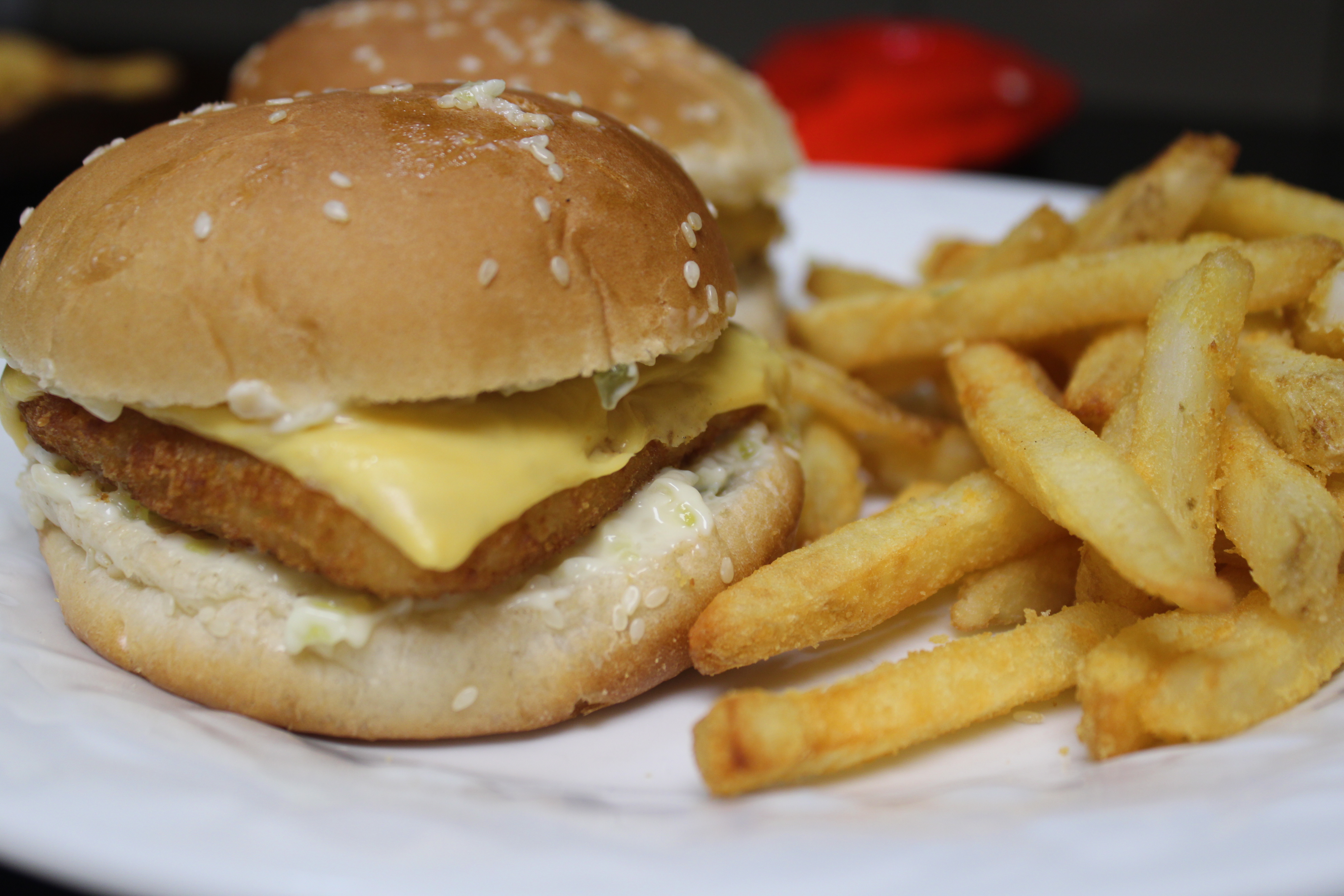 To assemble: Pile on the tarter sauce on both top and bottom bun. Place fish on the bottom bun. If desired, top with more sauce or enjoy as is with fries on the side.