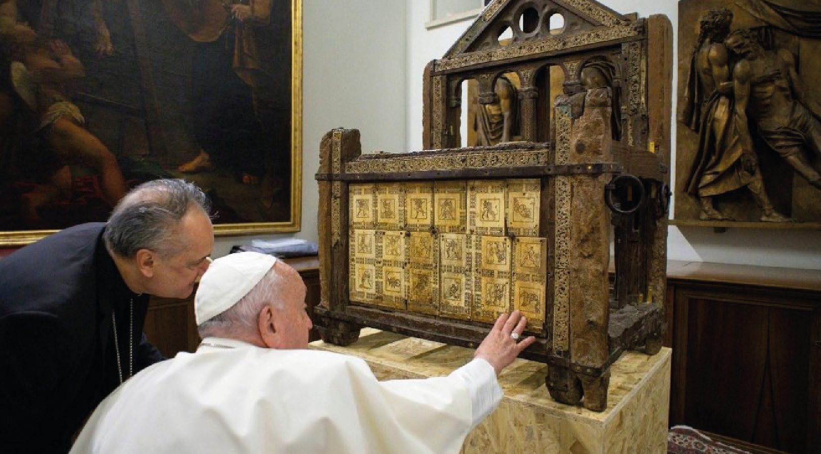 Christ is the center of the Catholic Church. He is the head of all Christian Faiths – it is a truth every Christian accepts and believes. Nearly all Christians believe Peter was left in charge when Christ died on the Cross and ascended into heaven. People need a physical person at the helm. Peter was chosen by Jesus to be that person. Most Christians recognize this authority. Catholics also believe that Peter’s supreme pastoral duties, his office as Bishop of Rome was and continues to be passed down through a chain of unbroken successors. The chair itself, representing that chain, is a relic that is rarely seen in public. It was on display in 2024 during renovations to the Basilica. The chair had not been seen since 1867. Unlike the bronze chair sculpted by Gian Lorenzo Bernini, Peter’s chair is far less ornate. It is a simple wooden chair believed to have been used by Saint Peter. Catholics invoke the image of the chair and all it represents when we say that a Pope has spoken ex cathedra – “from the chair.” To a Catholic, teachings spoken “from the chair” carry the authority handed down through succession, and are infallible. That authority was given to Peter when Christ said “You are Peter, and upon this rock I will build my church, and the gates of the netherworld shall not prevail against it. I will give you the keys to the kingdom of heaven. Whatever you bind on earth shall be bound in heaven; and whatever you loose on earth shall be loosed in heaven.”