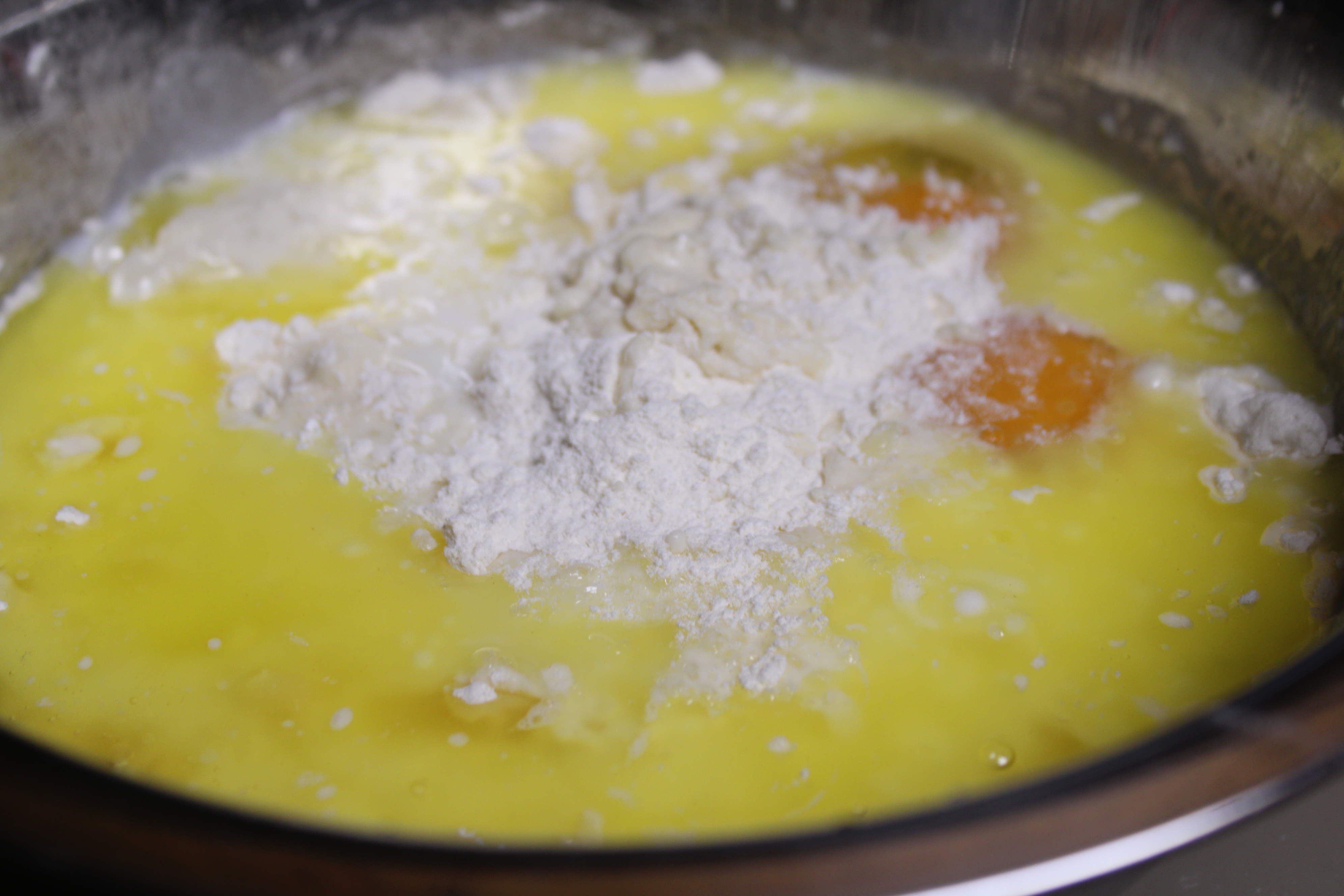 Add milk, eggs, melted butter and vanilla. Stir until batter is smooth. Set aside to rest for a few minutes.