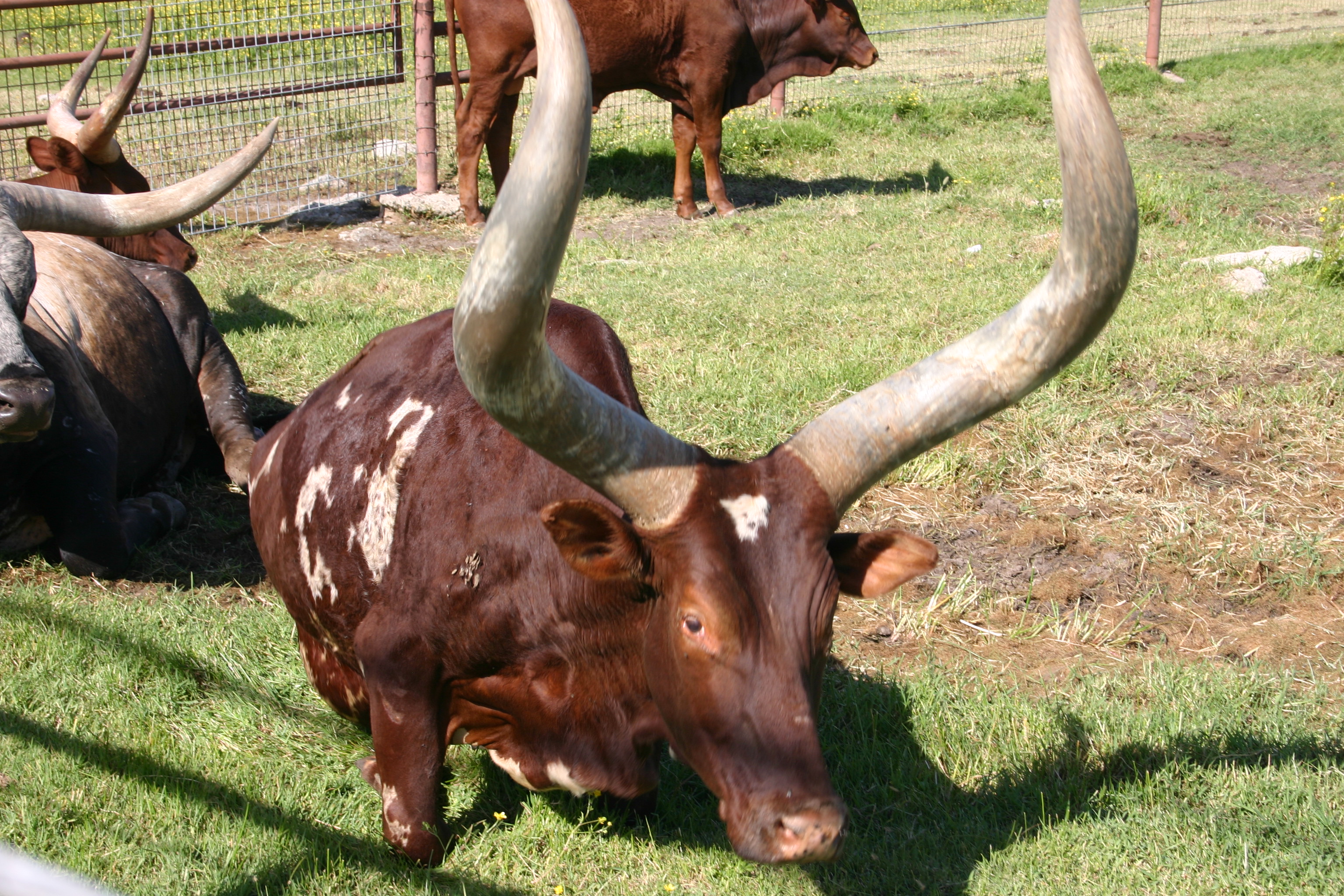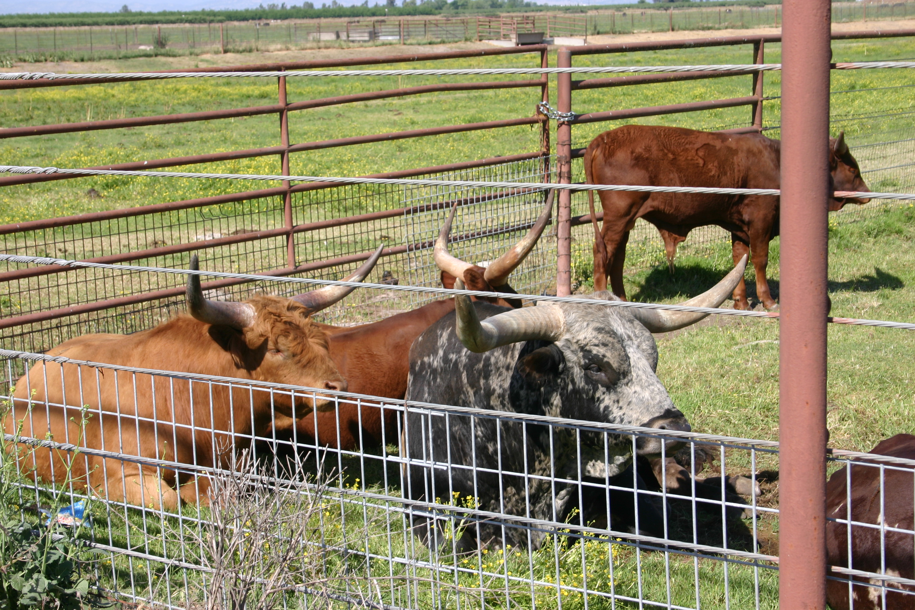 Of all my favorite breeds of cow, the Texas Longhorn is a close second to the furry Scottish Highland. With the exception of small county fairs, we rarely get to see a Highland Cow. Longhorns are another matter entirely, especially at auction. Just up the road from us in Escalon there is an auction house specializing in livestock. Sometimes when we are just out for a drive, I like to stop along the fence and talk with the animals. Hubby jokingly will ask what they had to say, and I make up whatever happens to pop into my head.