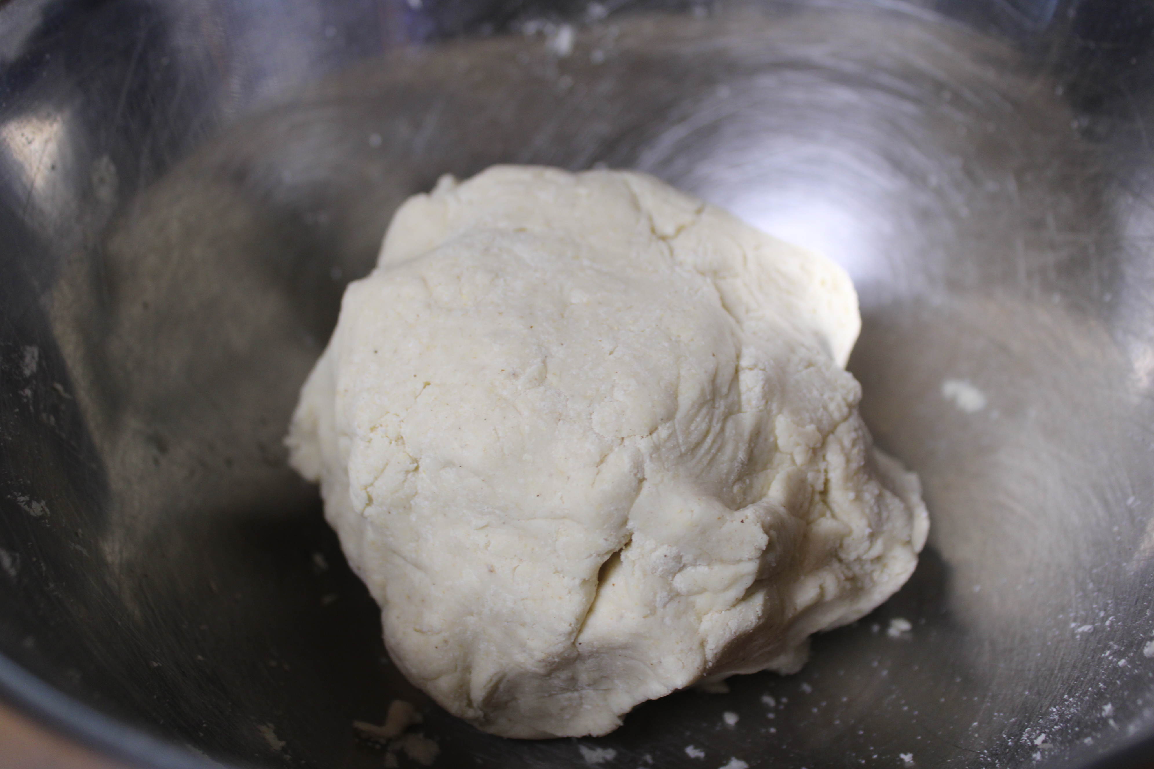 Line a work surface with waxed paper or plastic wrap; sprinkle lightly with water to barely dampan the workspace. With dampened hands, form the dough into a ball, flatten slightly. Cut into 6 equal pieces. Working with one ball at a time, flatten balls into a 4 or 5-inch disc (about until about 1/4-inch thick). Transfer discs to a waxed paper- or plastic wrap-lined baking sheet; keep covered with a damp cloth while working with remaining dough.