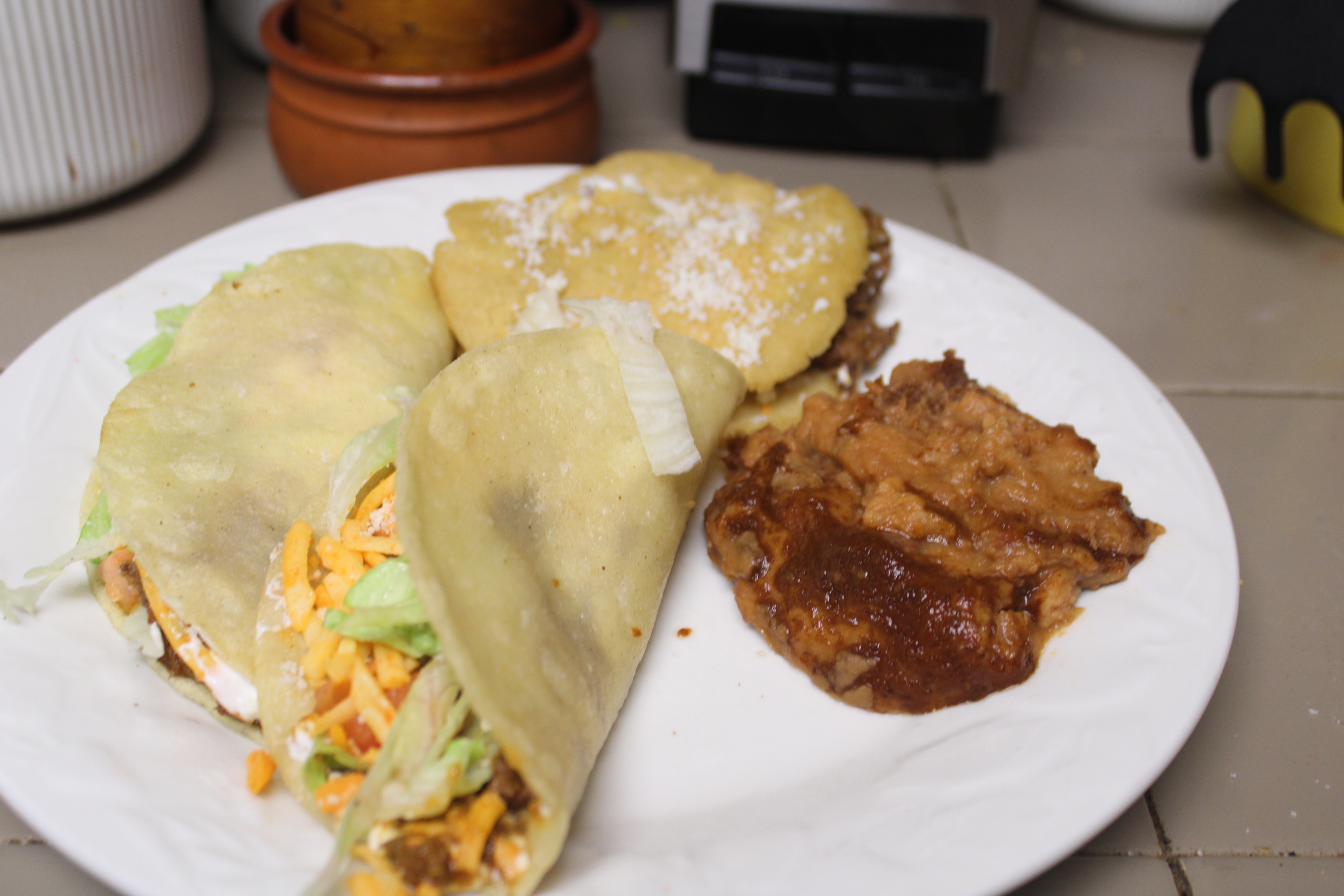 Yeah, except one tiny thing – still could not get the shells to slice open with pockets to fill. And yet we had all that beautiful beef filling. There was only one thing to do – fry up some corn tortillas for tacos, pour a margarita and call it a day. Still managed to use the Gordita as a sort of side to the tacos, and it was tasty. Made refried beans to finish everything off nicely.