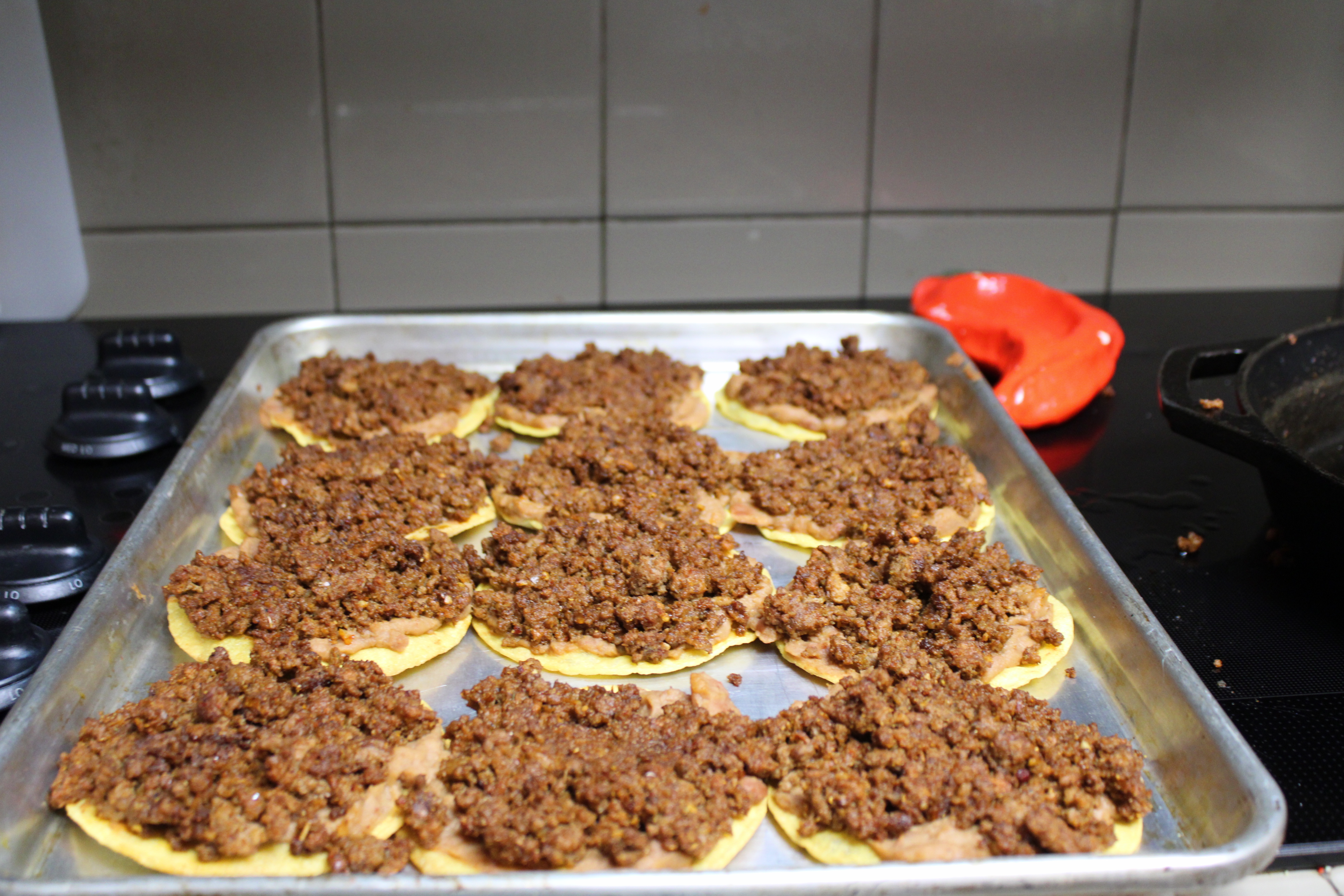 Place baking sheet(s), one at a time, in the heated oven. Broil just long enough for the cheese to melt, about 3 minutes or so. Transfer finished tostadas to a large serving platter, broil next batch.
