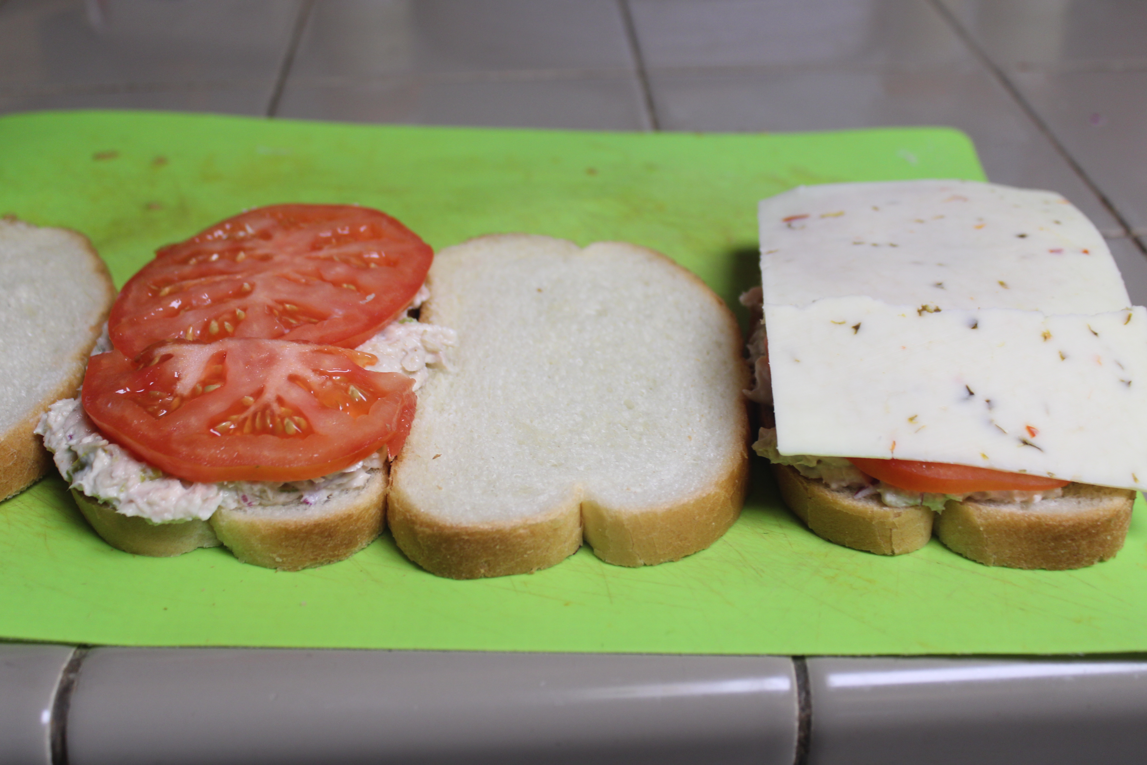 Slice tomato into rounds. If necessary, unwrap cheese slices and set aside.