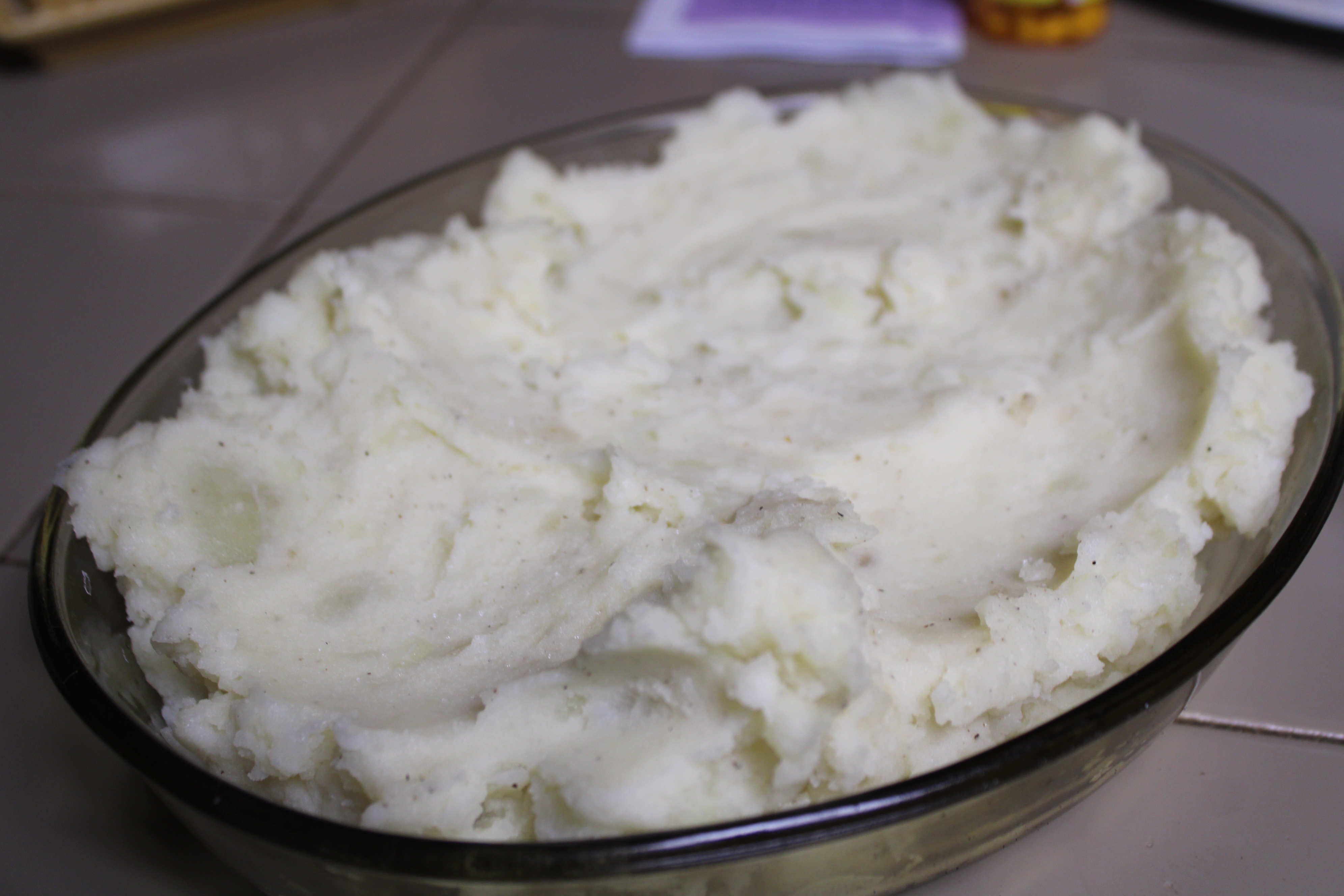 Drain potatoes well. Return potatoes to the pot, cover with a paper towel to absorbe the moisture in the rising steam.