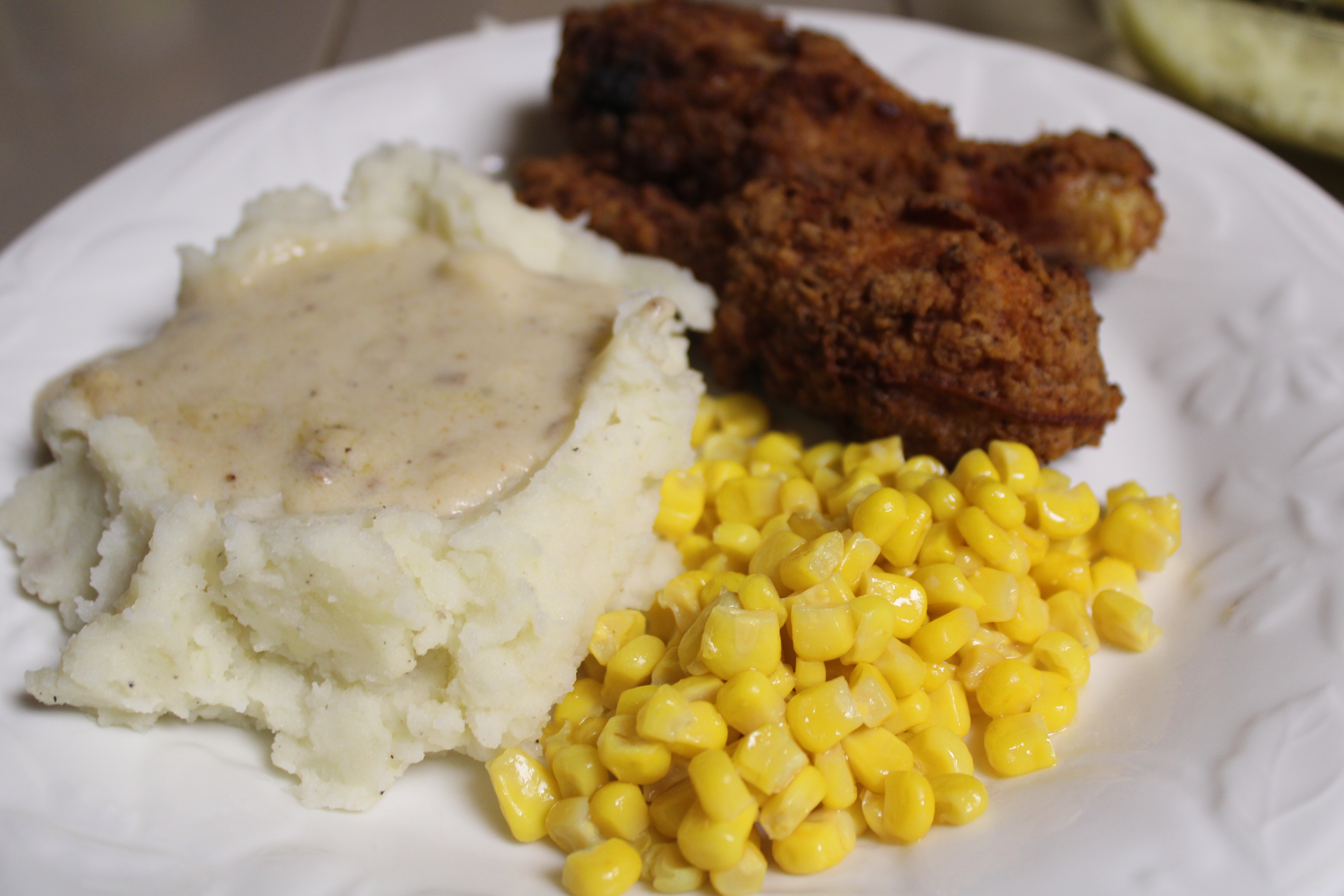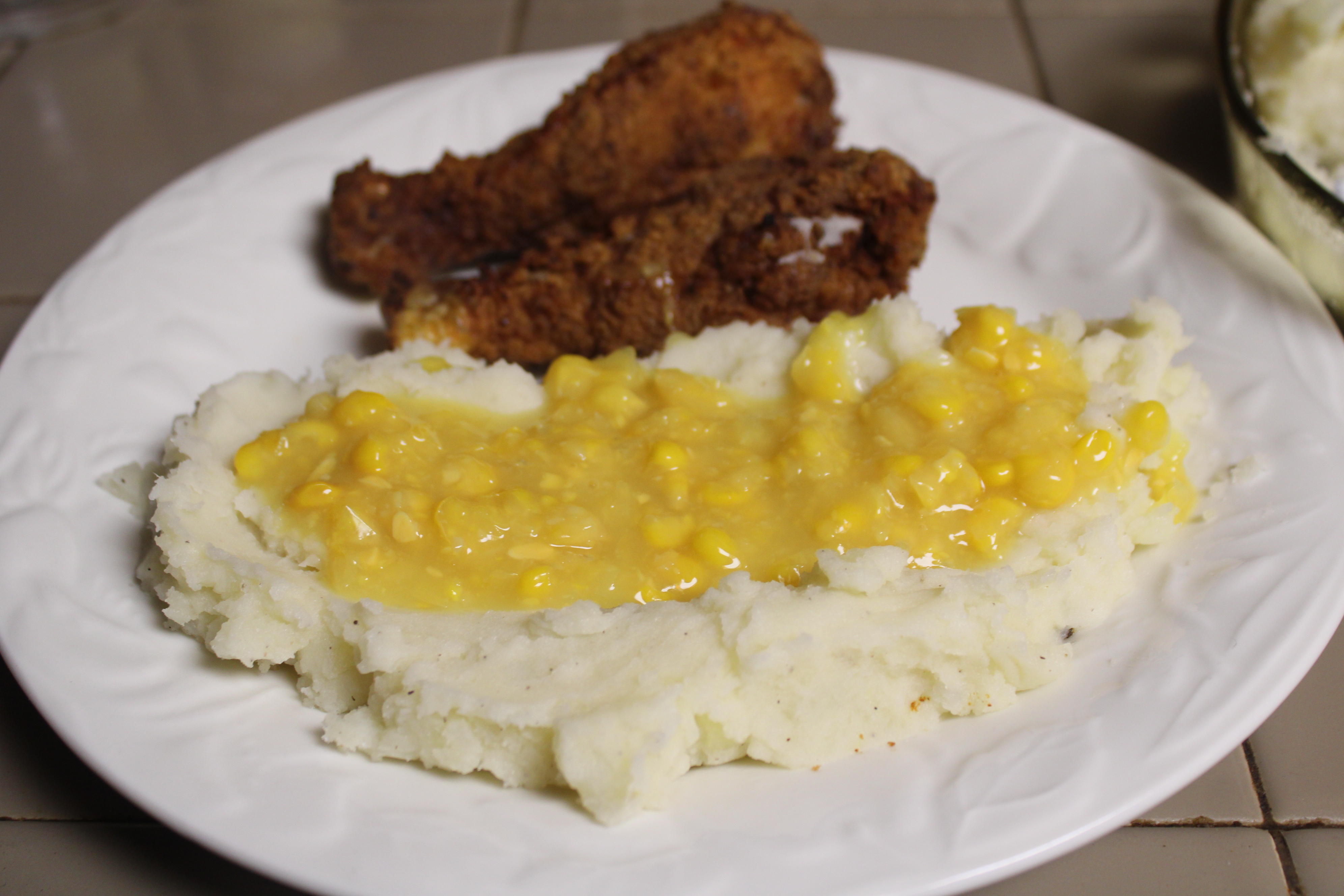 Finish off this delicious country supper with some corn – be it buttery or cream style. (Hubby would rather put cream style corn on his mashed potatoes than gravy – strange man).