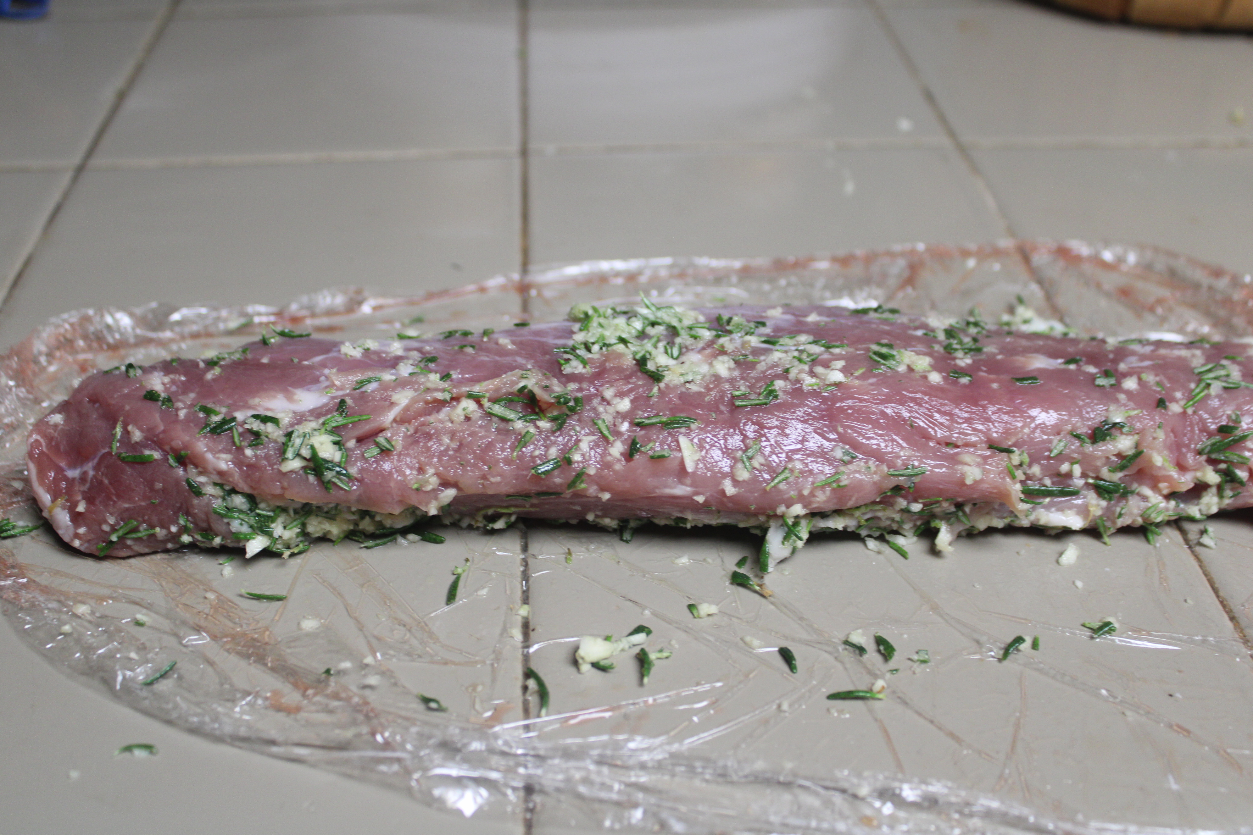 Rub pork tenderloin all over with the paste. Wrap in plastic wrap, let stand for 30 minutes